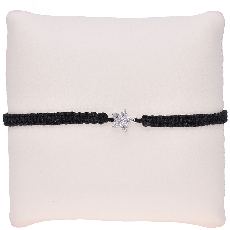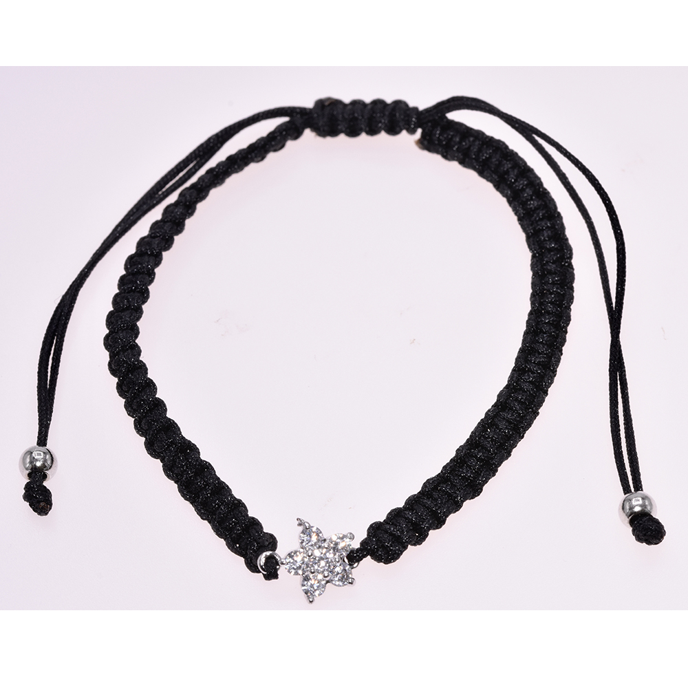 Bracelet noir avec cordon et motif avec 6 cristaux blancs
