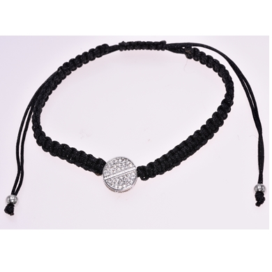 Bracelet noir cordon avec motif et différents cristaux blancs