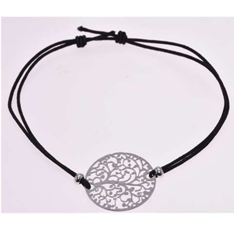 Bracelet ornament magnifique avec une pièce orientale en acier. Le bracelet en textile élastique assure un ajustement confortable et est réglable individuellement en taille. Le diamètre de la pièce est de 2 cm.