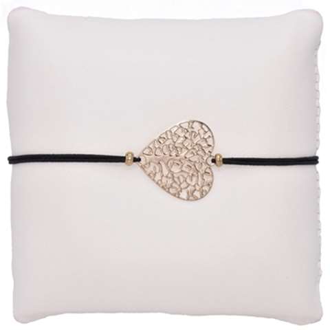 Bracelet ornament magnifique avec une pièce orientale en acier, coeur. Le bracelet en textile élastique assure un ajustement confortable et est réglable individuellement en taille. Le diamètre de la pièce est de 2 cm.