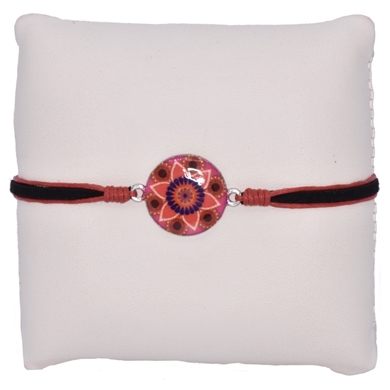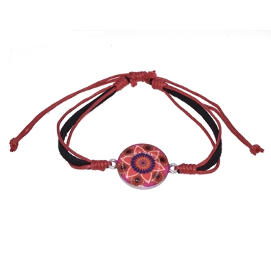 Bracelet de couleur rouge avec un motif coloré au milieu! Ce bracelet est ajustable avec une fermeture à nouer et convient à tous les poignets. La fermeture signifie simplement que vous pouvez facilement l'enlever en tirant sur les cordons! Le diamètre du motif est de 23 mm.
