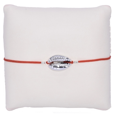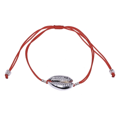 Bracelet de couleur rouge avec une coquille couleur argent au milieu! Ce bracelet est ajustable avec une fermeture à nouer et convient à tous les poignets. La fermeture signifie simplement que vous pouvez facilement l'enlever en tirant sur les cordons! La longueur de la coquille est de 18 mm.