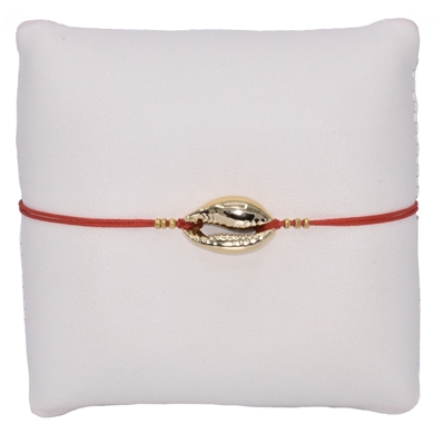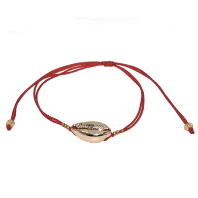 Bracelet de couleur rouge avec une coquille couleur dorée au milieu! Ce bracelet est ajustable avec une fermeture à nouer et convient à tous les poignets. La fermeture signifie simplement que vous pouvez facilement l'enlever en tirant sur les cordons! La longueur de la coquille est de 18 mm.