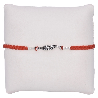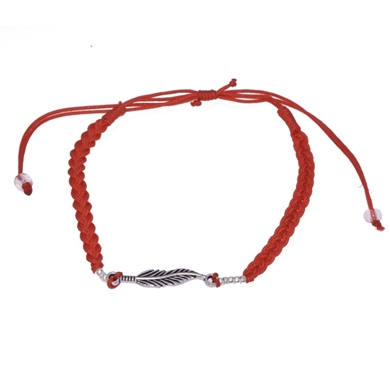Bracelet rouge avec un cordon et une feuille
