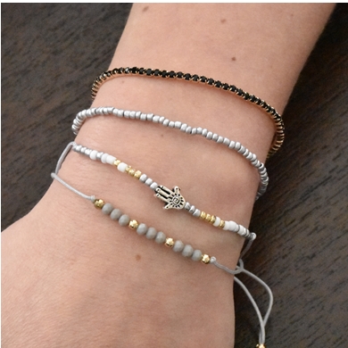 Bracelets fantaisie en gris clair avec une petite main fatma