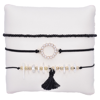 Ensemble de 3 bracelets fantaisie différents. Les trois peuvent être portés ensemble ou séparément. Les bracelets sont réglables avec une fermeture à tirette ou d'autres avec un élastique et s'adaptent à chaque poignet. La fermeture signifie simplement que vous pouvez facilement l'enfiler et l'enlever vous-même en tirant sur les cordons !