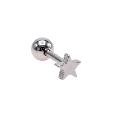 Le motif, ainsi que la tige et la boule, sont en acier chirurgical 316L de haute qualité. Ce matériau est caractérisé par ses propriétés spéciales telles que la solidité des couleurs et la résistance des matériaux. Ce piercing d'oreille a une épaisseur de tige de 1,2 mm et une longueur de tige de 7 mm. Diamètre de l'étoile est 5mm.