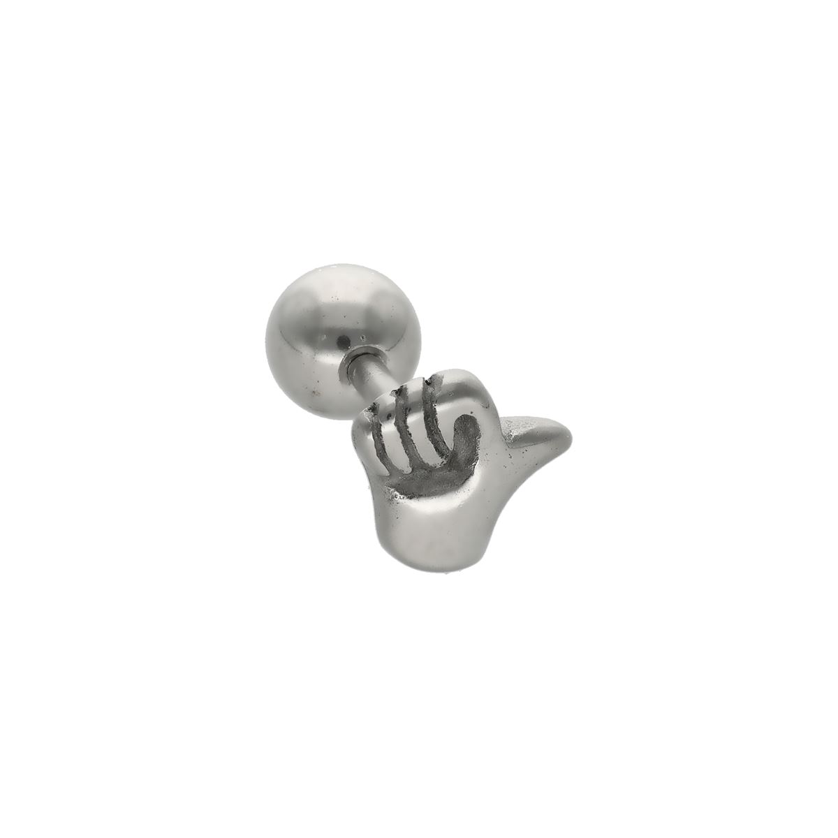 La main, ainsi que la tige et la boule, sont fabriqués en acier chirurgical 316L de haute qualité. Ce matériau se caractérise par ses propriétés spéciales telles que la solidité des teintures et la résistance des matériaux. Ce piercing d'oreille a une épaisseur de tige de 1,2 mm et une longueur de tige de 6 mm. Le diamètre de la main est de 6 mm.