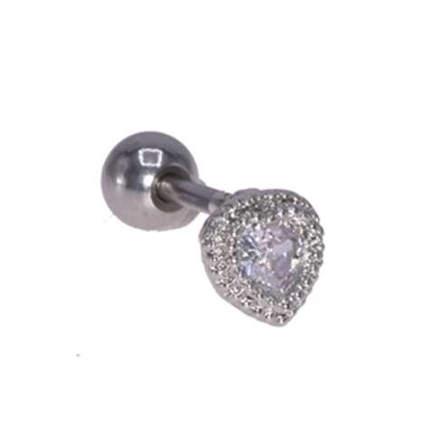 Cartilage/helix/tragus piercing en acier chirurgical, coeur avec un cristal