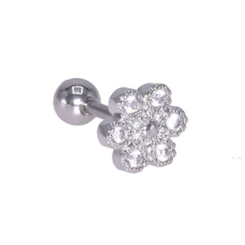 Cartilage/helix/tragus piercing en acier chirurgical, motif avec des cristaux blancs