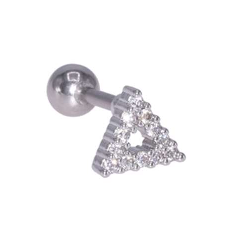 Cartilage/helix/tragus piercing en acier chirurgical, triangle avec des cristaux blancs