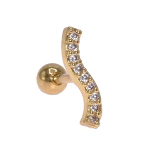 Cartilage/helix/tragus piercing en acier doré chirurgical avec 9 petits cristaux blancs