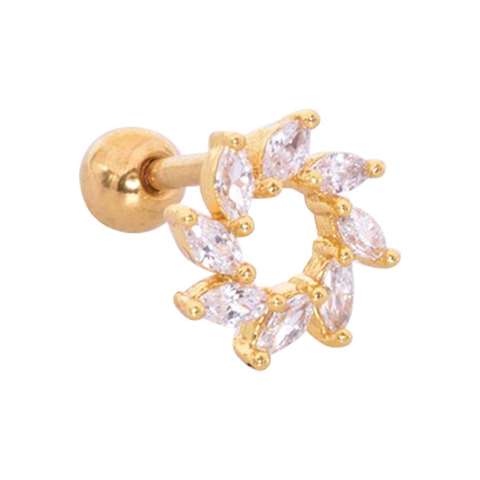 Cartilage/helix/tragus piercing en acier doré chirurgical, motif avec des cristaux blancs