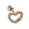 Cartilage/helix/tragus piercing en acier rose doré chirurgical avec coeur et des cristaux blancs griffés