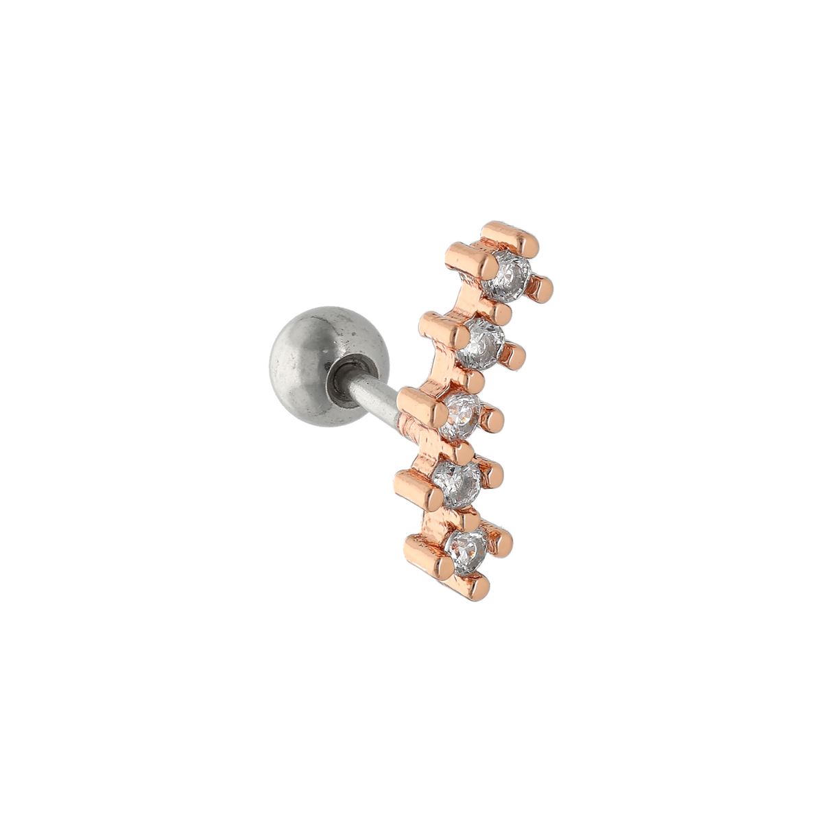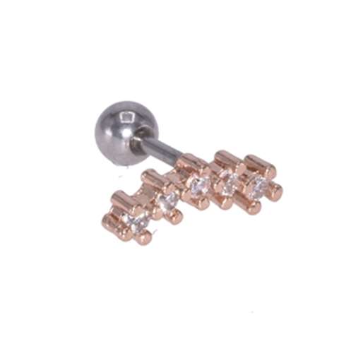 Cartilage/tragus/helix piercing en acier rose doré avec 5 cristaux blancs griffés