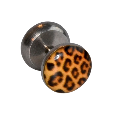 Faux plug en acier chirurgical, léopard, diamètre 10mm