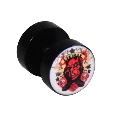 Faux plug en acrylique, diable avec fleur rouge, diamètre 10mm