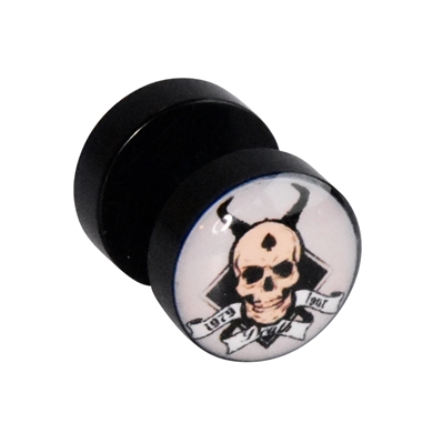 Faux plug en acrylique, tête de mort beige, diamètre 10mm