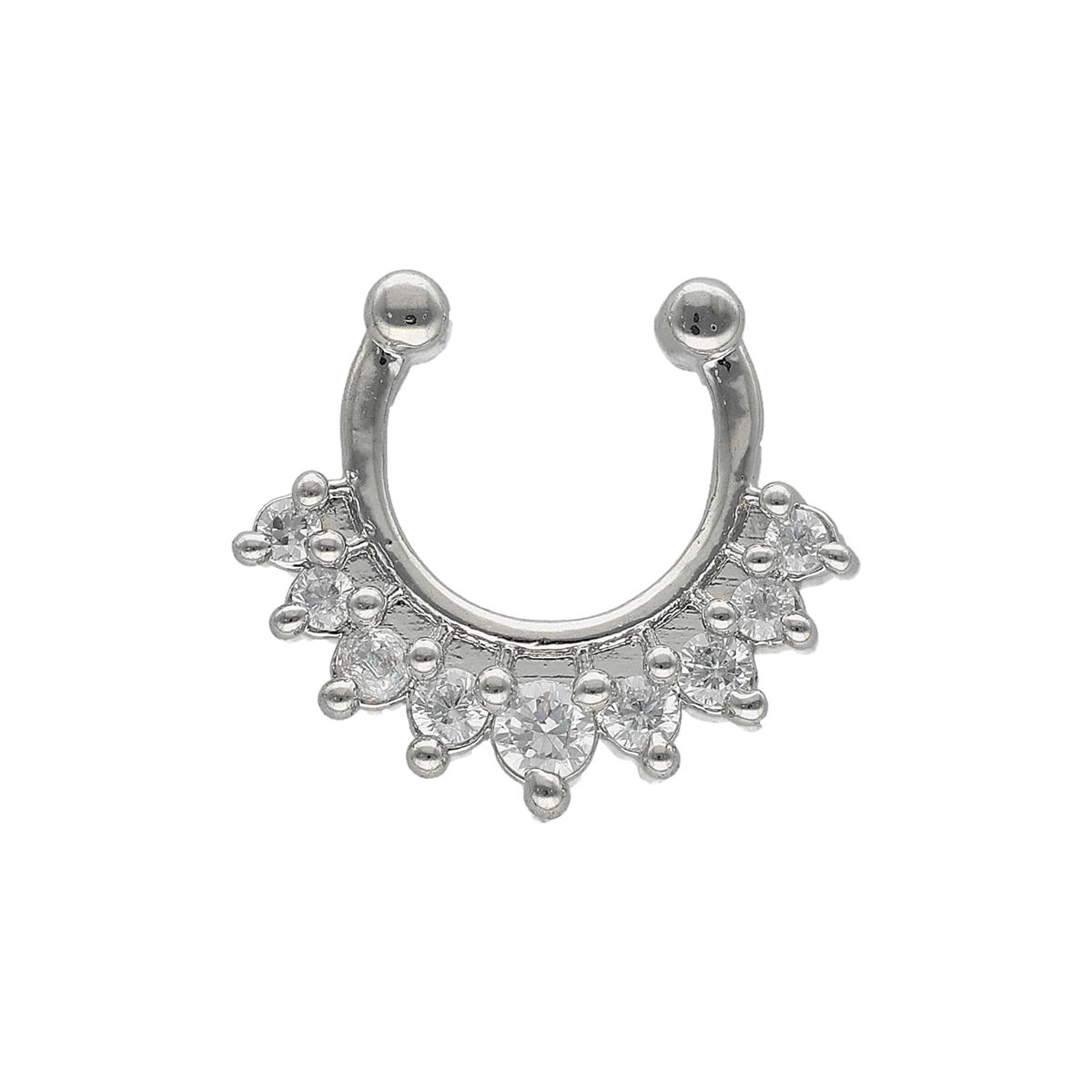 Faux septum en acier avec des cristaux, diamètre 10mm.