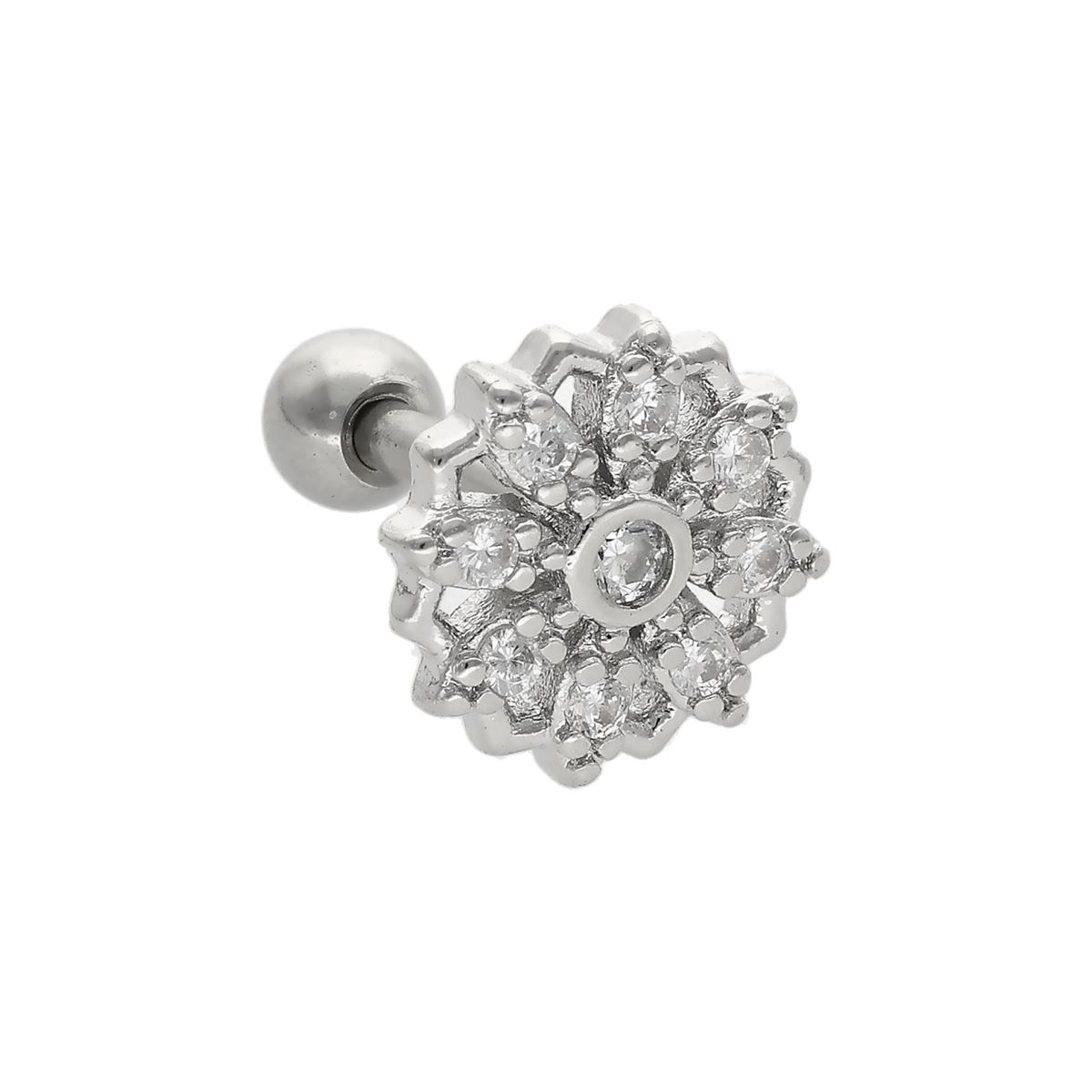 Helix/tragus/cartilage piercing en acier chirurgical avec un motif rond recouvert de cristaux blancs