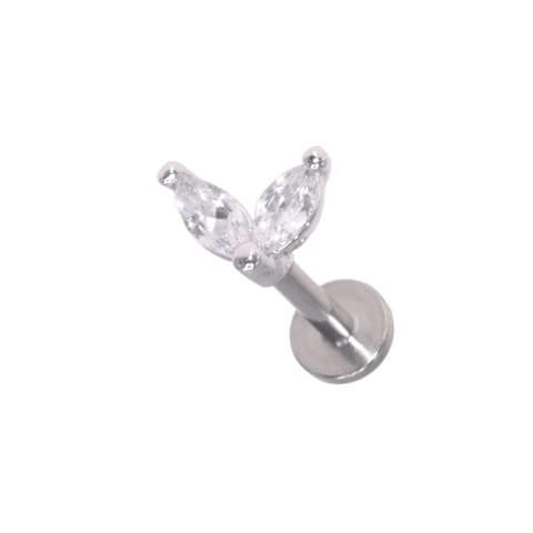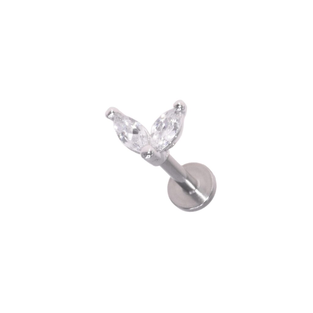 Helix/tragus/cartilage piercing en acier chirurgical, motif avec 2 cristaux blancs