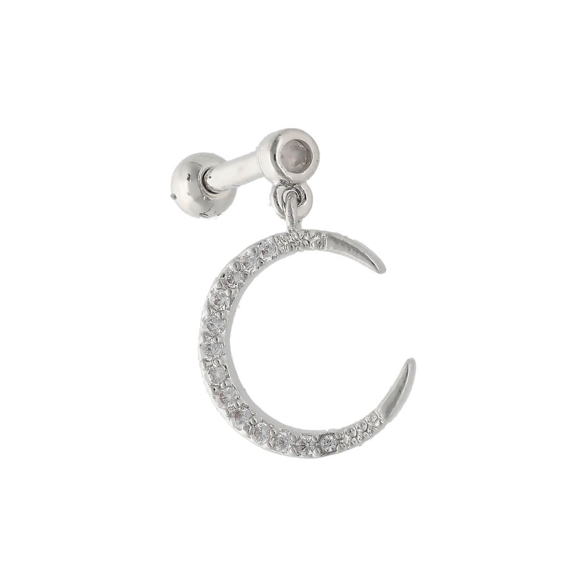 Helix/tragus/cartilage piercing en acier chirurgical, pendentif lune avec plusieurs cristaux blancs