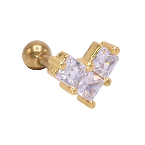 Helix/tragus/cartilage piercing en acier doré chirurgical avec 3 cristaux blancs griffés