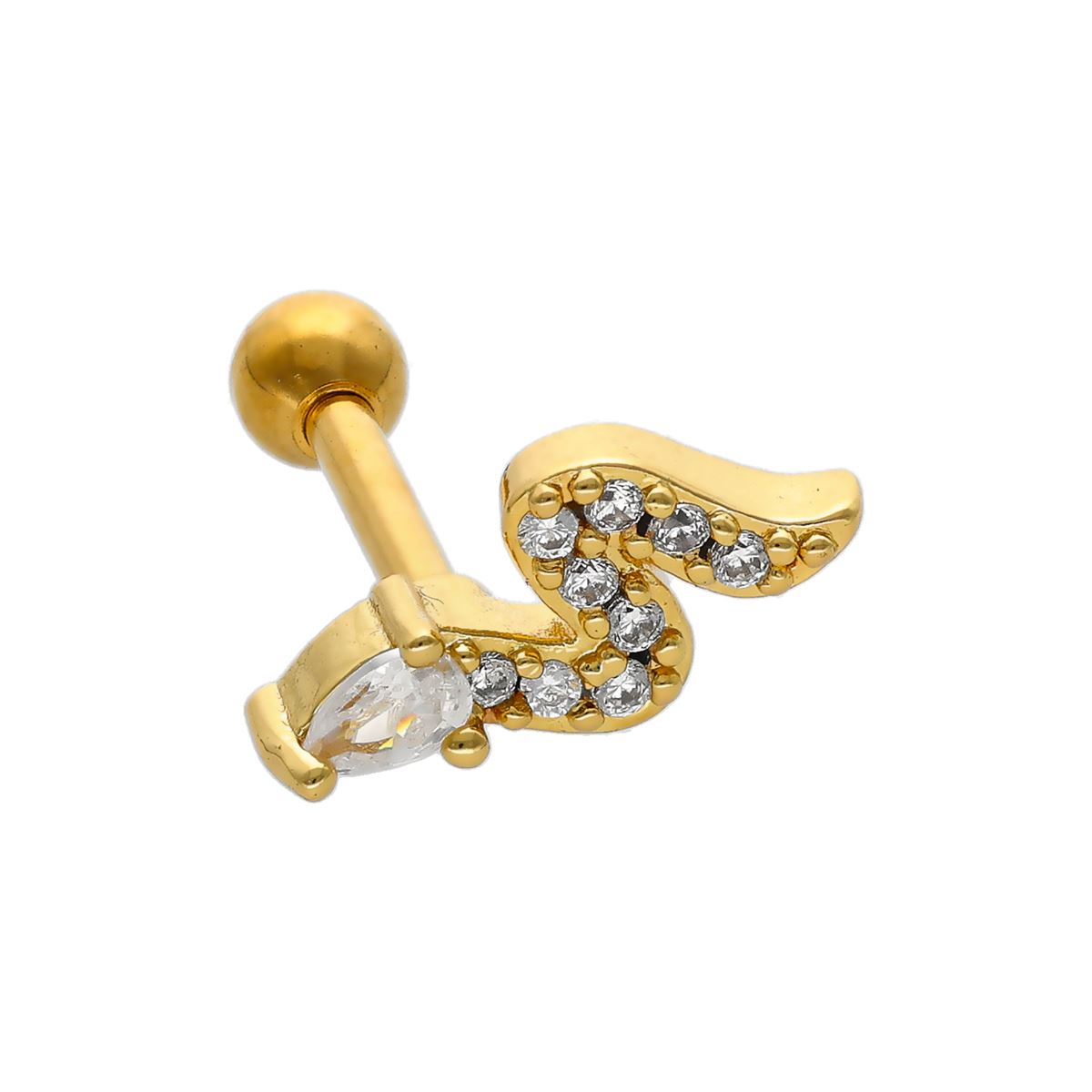 Helix/tragus/cartilage piercing en acier doré chirurgical avec un serpent couvert de cristaux blancs