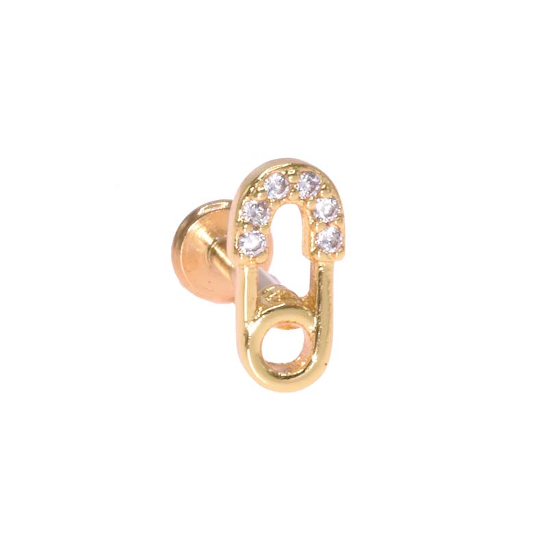 Helix/tragus/cartilage piercing en acier doré chirurgical avec une épingle à nourrice et des cristaux blancs