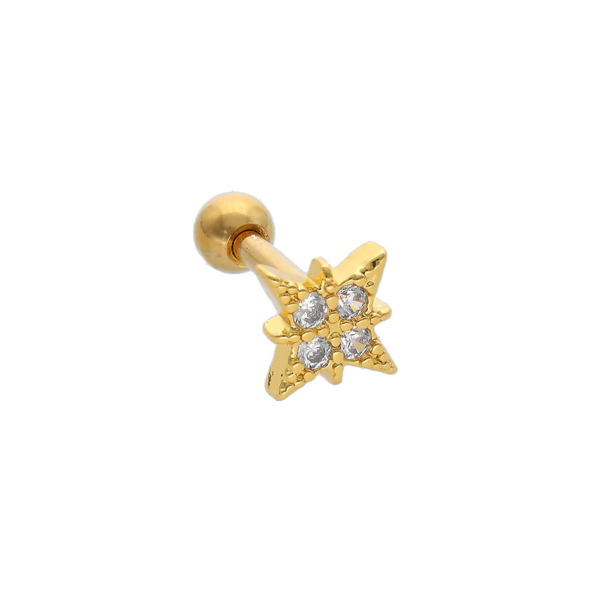 Helix/tragus/cartilage piercing en acier doré chirurgical, étoile avec des petits cristaux blancs