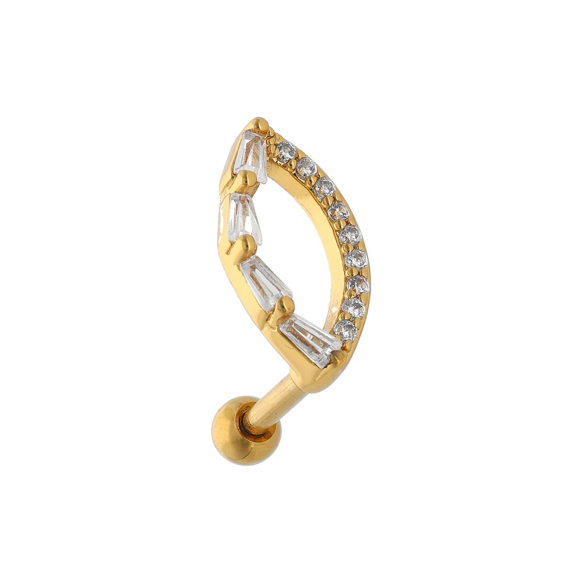 Helix/tragus/cartilage piercing en acier doré chirurgical, motif ovale avec plusieurs grands et petits cristaux blancs