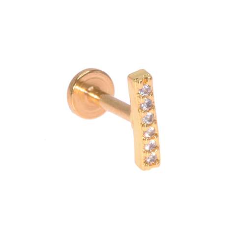 Helix/tragus/labret piercing en acier doré chirurgical, barre droite avec plusieurs cristaux blancs