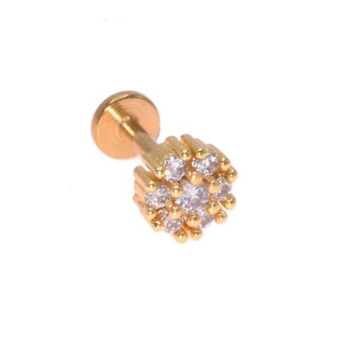Helix/tragus/labret piercing en acier doré chirurgical, motif rond avec différents cristaux blancs
