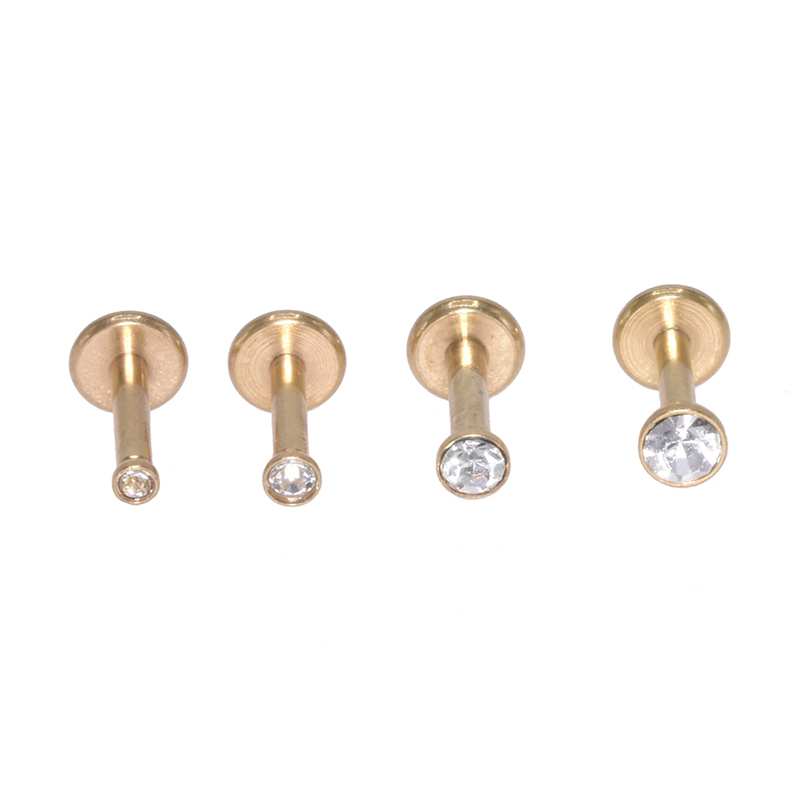 Labret/cartilage/helix piercing en acier doré chirurgical avec un cristal blanc plat