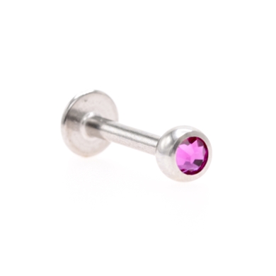 Labret en acier chirurgical, grand cristal plat fuchsia