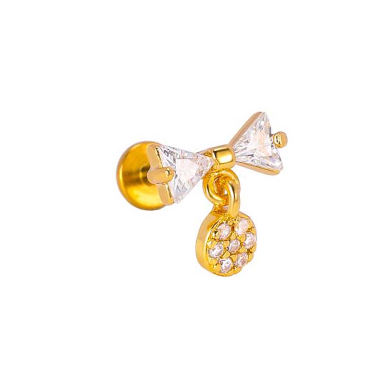 Labret/helix/cartilage piercing en acier doré chirurgical-papillon avec un motif rond suspendu