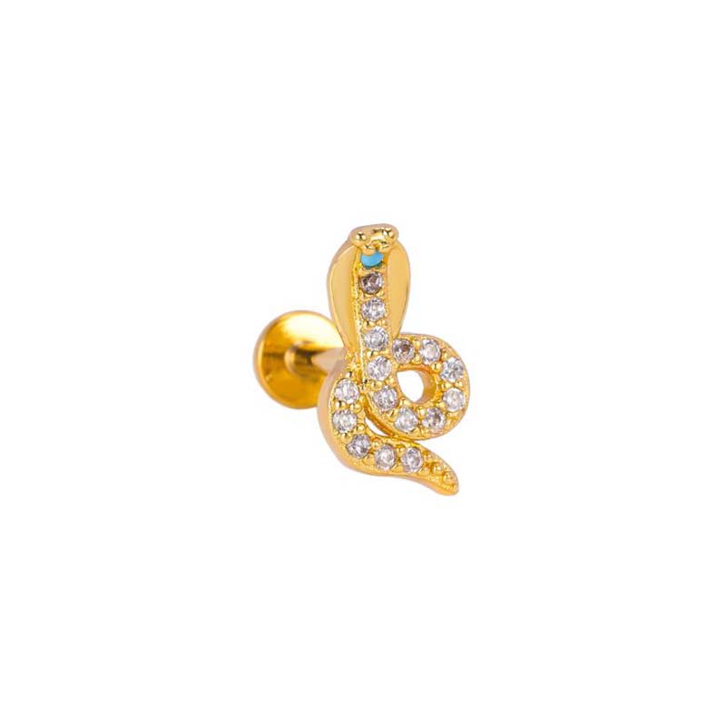 Labret/helix/cartilage piercing en acier doré chirurgical-serpent cobra recouvert de cristaux blancs