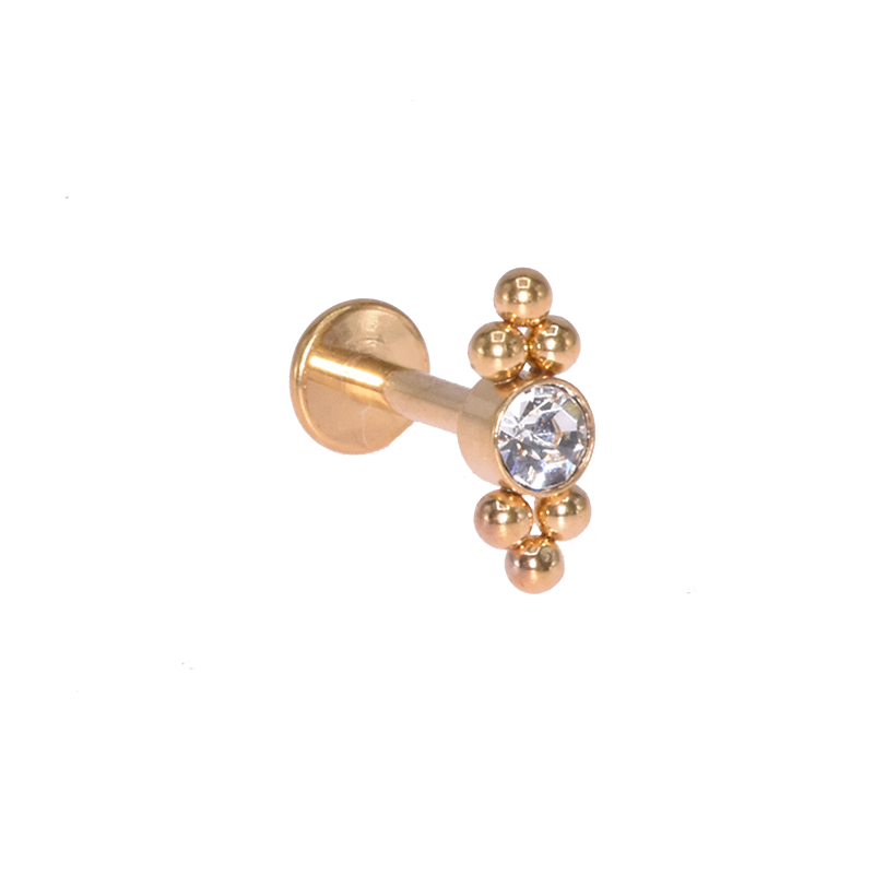 Labret/helix/tragus piercing en acier doré chirurgical, cristal blanc avec 6 petites boules