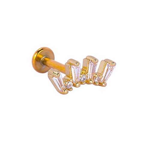 Labret/helix/tragus piercing en acier doré chirurgical-motif recouvert de cristaux blancs