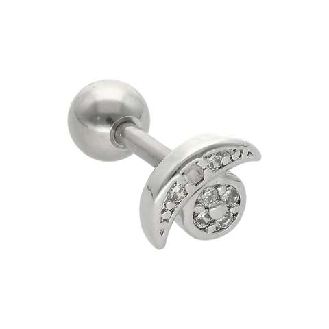 Helix/tragus/cartilage piercing en acier chirurgical avec une lune recouvert de cristaux blancs