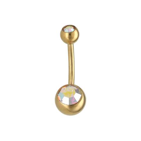 Nombril en acier chirurgical, doré avec cristaux boréal (irisé)