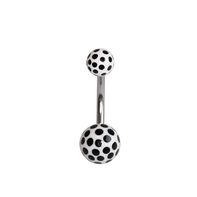 Ce piercing nombril est fabriqué en acier chirurgical 316L de haute qualité et muni de boules détachables en acrylique de haute qualité. Cet article est disponible avec une épaisseur de tige de 1,6 mm et une longueur de tige de 10 mm. Le diamètre des boules est de 5mm et 8mm.