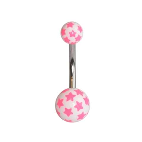 Nombril en acrylique, blanc avec étoiles en fuchsia