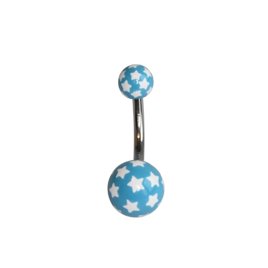 Nombril en acrylique, bleu clair avec étoiles en blanc