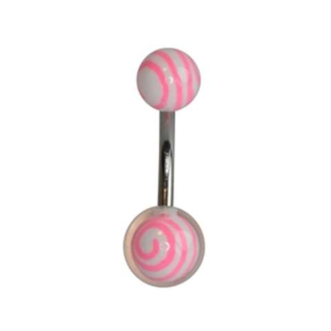 Ce piercing nombril est fabriqué en acier chirurgical 316L de haute qualité et muni de boules détachables en acrylique de haute qualité. Cet article est disponible avec une épaisseur de tige de 1,6 mm et une longueur de tige de 10 mm. Le diamètre des boules est de 5mm et 8mm. Boule spirale avec boule transparente autour d'elle.