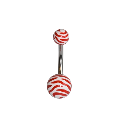 Nombril en acrylique, zèbre rayé blanc/rouge