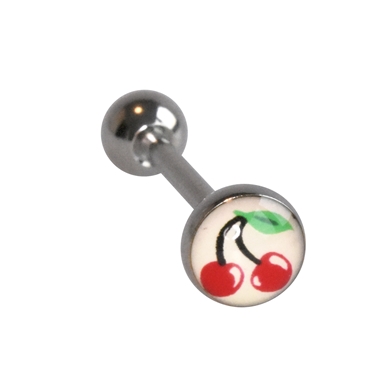 Piercing de langue en acier chirurgical, cerise avec fond blanc