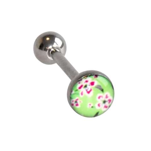 Piercing de langue en acier chirurgical, fleur verte