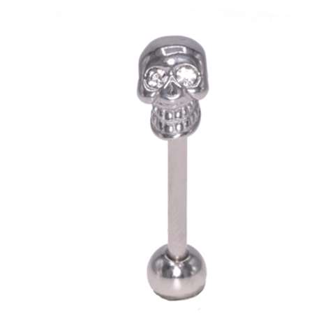 Piercing de langue en acier chirurgical, tête de mort aux yeux blancs