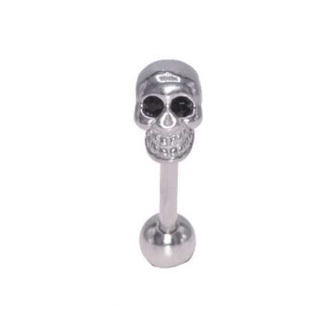 Piercing de langue en acier chirurgical, tête de mort aux yeux noirs